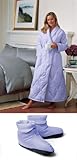 A set of our Famous White Down Robe and Down Slippers to keep you Warm Head-to-Toe. This Combination is for the Robe in Extra-Large, so under Women's size, select the slipper size you would like, and the Color you would like the set in. Surround yourself Head-to-Toe in the luxurious warmth of light weight white down, and elegant, luxurious 100% cotton 300 thread count sateen fabric. Long-sleeve, Ankle-length Robe, and Matching White Down Slippers, that are like wearing down-filled socks to keep cold toes toasty warm. Sizes for Slippers XS (5-6) S (7-8) M (9-10) L (11-12)